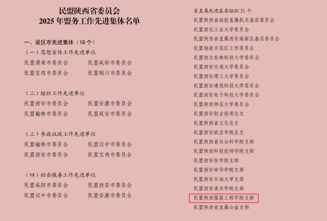 陕服新闻网讯(党委统战部)1月17日至18日召开的民盟陕西省第十三届委员会第四次全体会议对2025年在盟务工作中取得突出成绩的集体和个人进行了表彰,我校民盟支部获民盟陕西省委2025年“省直属先进基层组织”称号,支部主委王伟被民盟陕西省委评为2025年“盟务工作先进个人”。