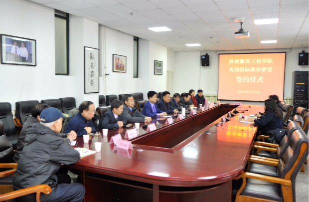 旷岚代表英国国际教育联盟,张义明代表陕西服装工程学院签订了合作协议。